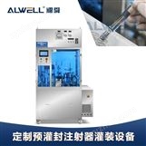 (2)灌裝部分的原理:口服液瓶由進瓶大撥輪送至過渡撥輪,再由過渡撥輪送至同步帶,由同步帶上的鑲塊拖動瓶子勻速向前運行,灌針在跟蹤機構的控制下,插入瓶口,與瓶子同步向前運行,實現跟蹤灌裝。潛針隨著液面的上升而上升,起到消泡作用。