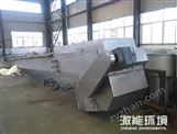 按水流方向耙齒鏈類同于格柵,在耙齒鏈軸上裝配的耙齒間隙可以根據使用條件進行選擇。當耙齒把流體中的固態懸浮物分離后可以保證水流暢通流過。整個工作過程是連續的,也可以是間歇的。