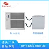 作為工業冷卻使用時,冷水機組產生的低溫水可以直接送到需要冷卻的設備、容器內,但往往為了控制精確穩定的水溫,冷水機組出水是送到緩沖水池后再進入需要冷卻的設備或容器內。