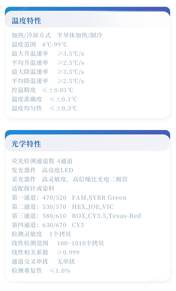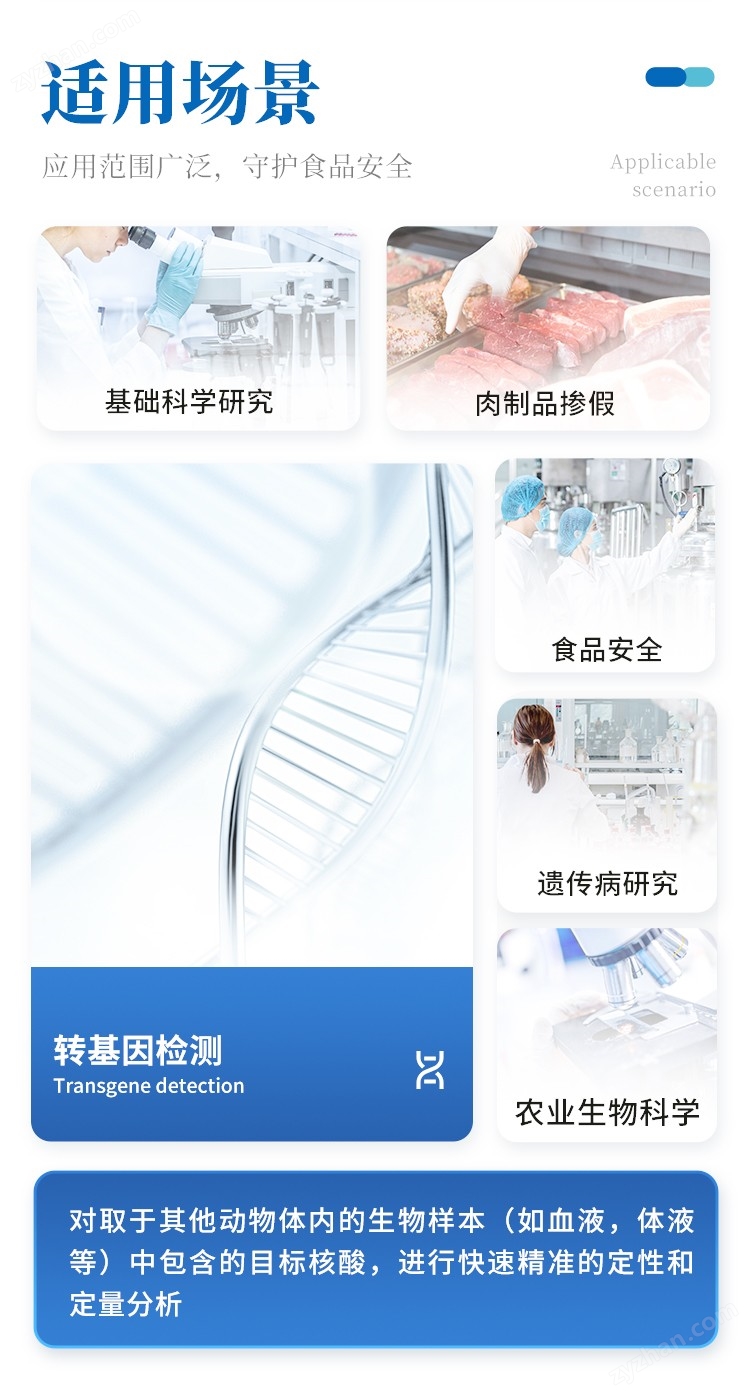 對(duì)取于其他動(dòng)物體內(nèi)的生物樣本(如血液,體液等)中包含的目標(biāo)核酸,進(jìn)行快速精準(zhǔn)的定性和定量分析,同時(shí)也能夠?qū)μ厥鈽颖具M(jìn)行標(biāo)準(zhǔn)曲線(xiàn),熔解曲線(xiàn),基因分型等分析。