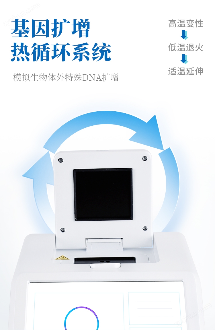 實(shí)時(shí)熒光定量PCR儀器的原理:聚合酶鏈?zhǔn)椒磻?yīng)(polymerase chain reaction,PCR)是一種用于放大擴(kuò)增特定的DNA片段的分子生物學(xué)技術(shù),它可看作是生物體外的特殊DNA擴(kuò)增,由高溫變性、低溫退火及適溫延伸等幾步反應(yīng)組成一個(gè)溫度循環(huán)周期,使目的基因得以迅速擴(kuò)增,具有特異性強(qiáng)、靈敏度高、操作簡(jiǎn)便、省時(shí)等特點(diǎn),是基因擴(kuò)增技術(shù)的一次重大革新。PCR技術(shù)可將極微量的目標(biāo)DNA特異地?cái)U(kuò)增上百萬(wàn)倍,從而大大提高對(duì)DNA分子的分析和檢測(cè)能力。