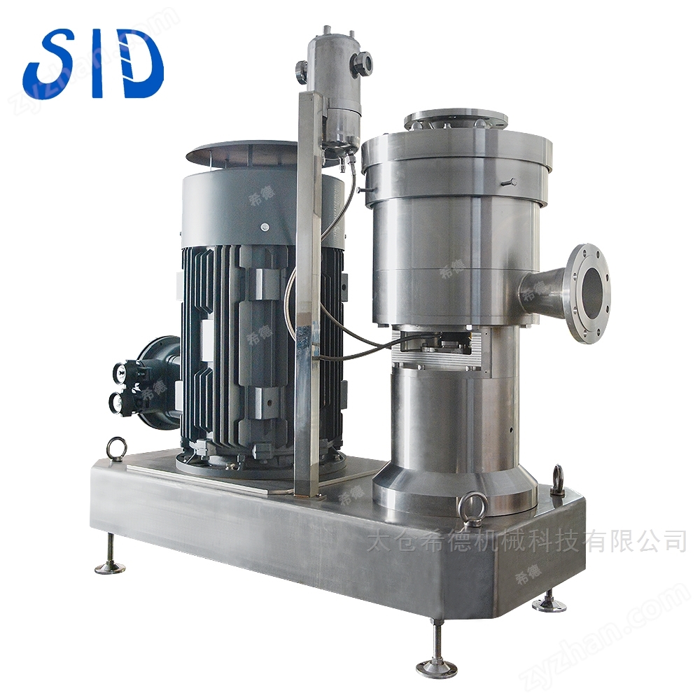 研磨區:研磨區是由凹凸膠體磨組成,轉定子切有許多中齒及細齒組成,將已剪切的小顆粒進行深化研磨,研磨時可調距離為0.01~3mm;
