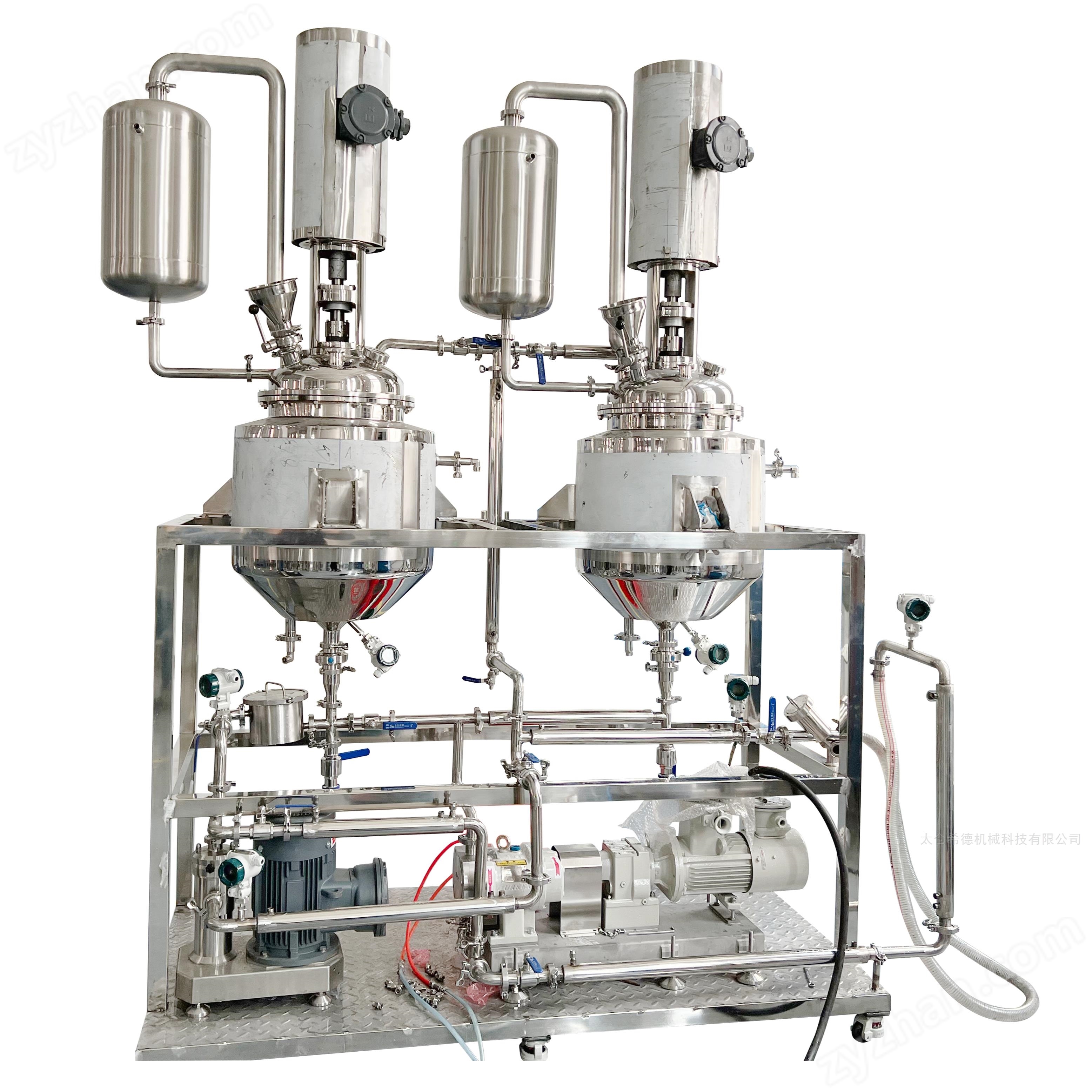 膠體磨在電動機的高速轉動下物料從進口處直接進入高剪切破碎區,通過一種特殊粉碎裝置,將流體中的一些大粉團、粘塊、團塊等大小顆粒迅速破碎,然后吸入剪切粉碎 區,在十分狹窄的工作過道內由于轉子刀片與定子刀片相對高速切割從而產生強烈摩擦及研磨破碎等。在機械運動和離心力的作用下,將已粉碎細化的物料重新壓入精磨區進行研磨破碎。精磨區分三級,越向外延伸一級磨片精度越高,齒距越小,線速度越長,物料越磨越細,同時流體逐步向徑向作曲線延伸。每到一級流體的方 向速度瞬間發生變化,并且受到每分鐘上千萬次的高速剪切、強烈摩擦、擠壓研磨、顆粒粉碎等,在經過三個精磨區的上千萬次的高速剪切、研磨粉碎之后,從而產 生液料分子鏈斷裂、顆粒粉碎、液粒撕破等功效使物料充分達到分散、粉碎、乳化、均質、細化的目的。液料的zui小細度可達0.5um。