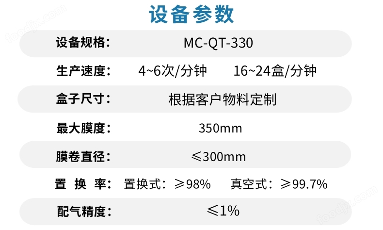 可根據(jù)食品類型調(diào)整氣體配比(如肉類高氧保鮮、熟食高CO?抑菌),支持定制化包裝方案。