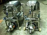 本機除配用電機外,其它機件均采用304或316L優質耐腐蝕不銹鋼材料制成,適用于過濾各種PH值酸堿溶液,本機應用加壓密閉過濾,濾液損耗少,過濾質量好,效率高。過濾部分由十層濾板組成,過濾面積大,流通量大;且可根據被濾溶液之不同生產工藝(初濾、脫活性碳、除微粒、半精濾、精濾)要求,更換不同濾膜、及根據用戶生產流量之大小可適當減少或增加濾板層數,使之適合生產之需要,因此本機具有一機多用適用范圍廣之特點;濾板采用平面螺紋網狀形,結構,不變形,容易清洗,能有效地增長各種濾膜的使用壽命,從而降低和節約生產成本,本機配備之不銹鋼,其配用電機小,耗電省。機座下裝有膠輪,操作方便,移動靈活,可供移動使用。(本機同規格,型號,層數,流量比老型號大2T/h-3T/h,本機已生產、型號:ND-200、ND-300 ND-400)。度低而結晶的問題解決。
