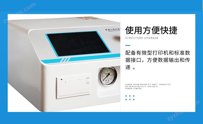 標準配置:主機、微型打印機、測試約束架、密封墊、Φ8 mm聚氨酯管(3m);