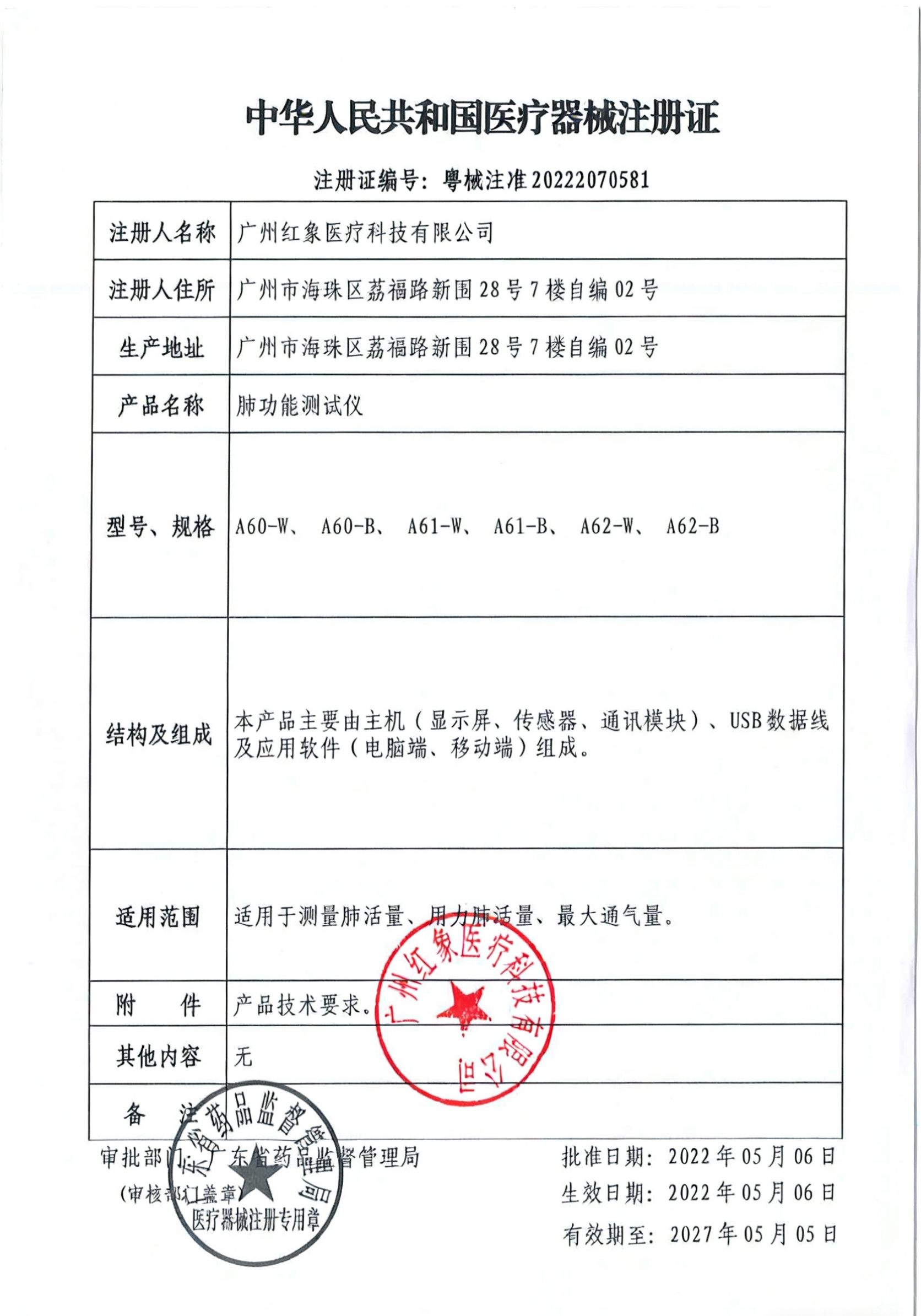 適用范圍/預期用途 適用于測量肺活量、用力肺活量、最大通氣量。