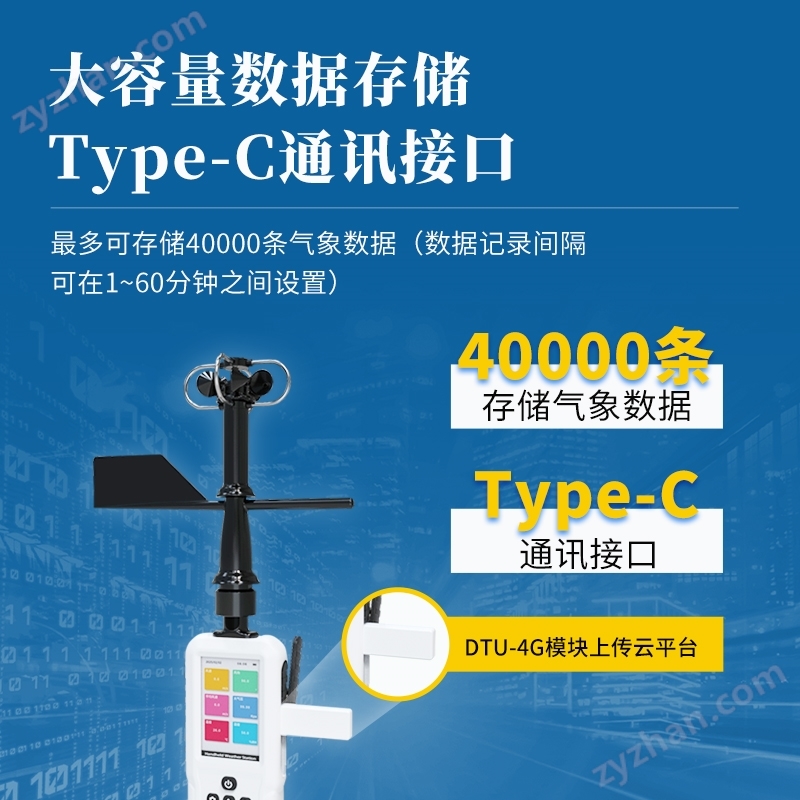 3.大容量數據存儲,最多可存儲40000條氣象數據(數據記錄間隔可在1~60分鐘之間設置)。