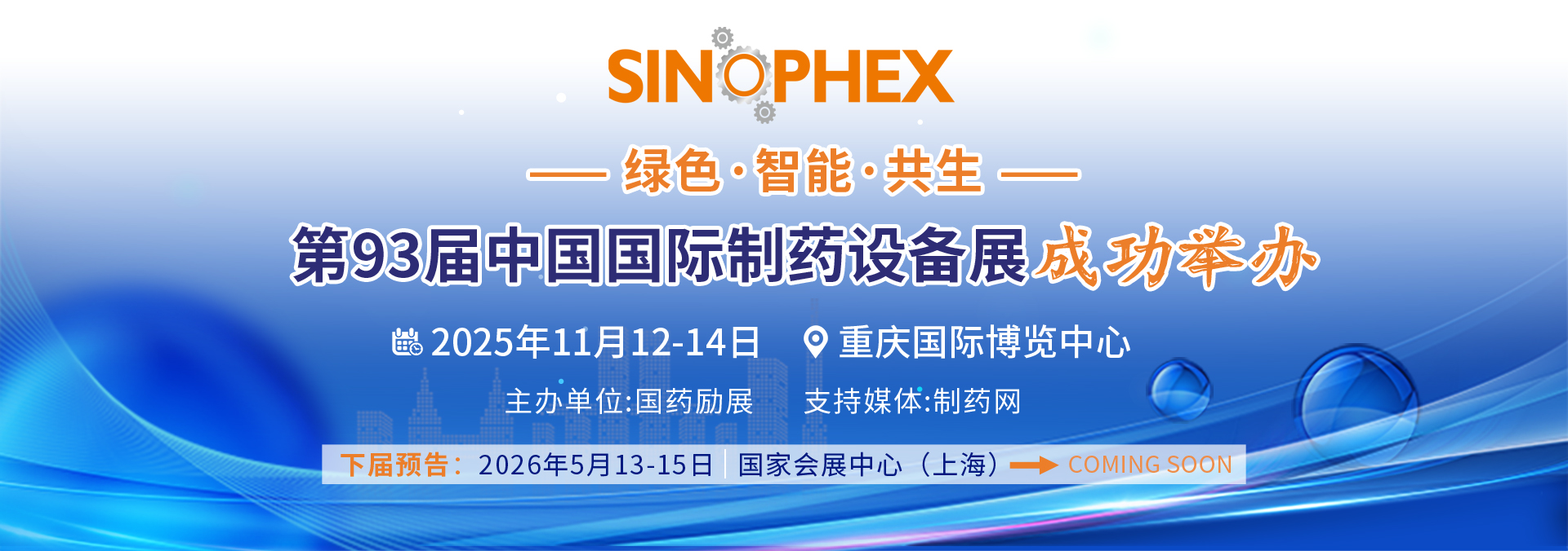 下屆預(yù)告:第94屆中國國際制藥設(shè)備展將于2026年5月13-15日,在國家會展中心(上海)舉辦!
