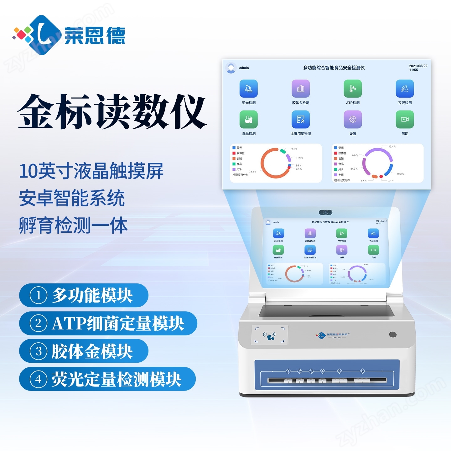 二、功能齊全:四個標準化檢測模塊包含:多功能模塊、ATP細菌定量模塊、膠體金模塊、熒光定量檢測模塊