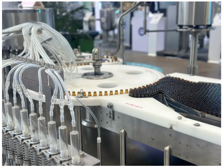 該灌裝機結構緊湊、操作便捷、兼容性強,適用于2-30ml的小容量西林瓶注射劑生產,產能可達400瓶/分鐘。這款高效設備廣泛應用于人藥和獸藥的批量生產。