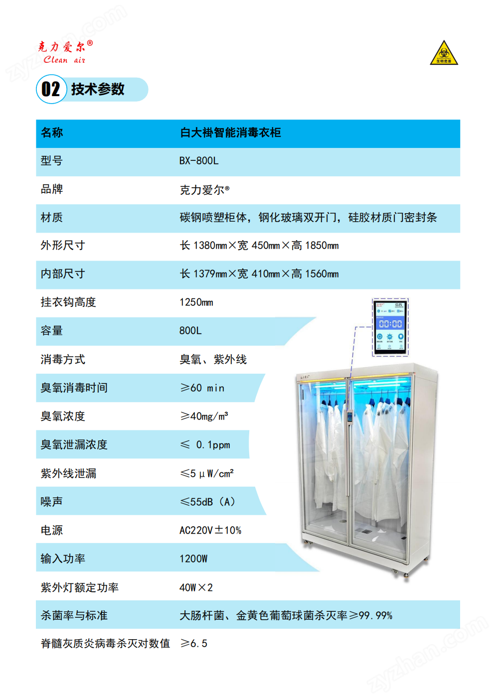 當前位置:北京克力愛爾生物實驗室工程有限公司>>消毒滅菌設備>>智能消毒柜>> BX-800L智能白大褂消毒衣柜