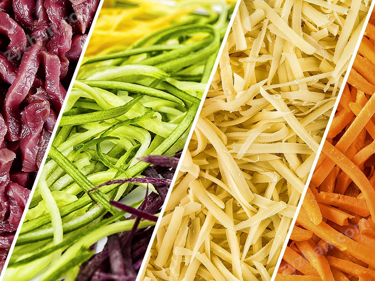 應用:土豆,甜椒,胡蘿卜,西紅柿,芋頭,洋蔥,西葫蘆,黃瓜,竹筍,所有類型的白菜, 蘋果,黃桃,菠蘿,芒果,香蕉,梨,哈密瓜等。