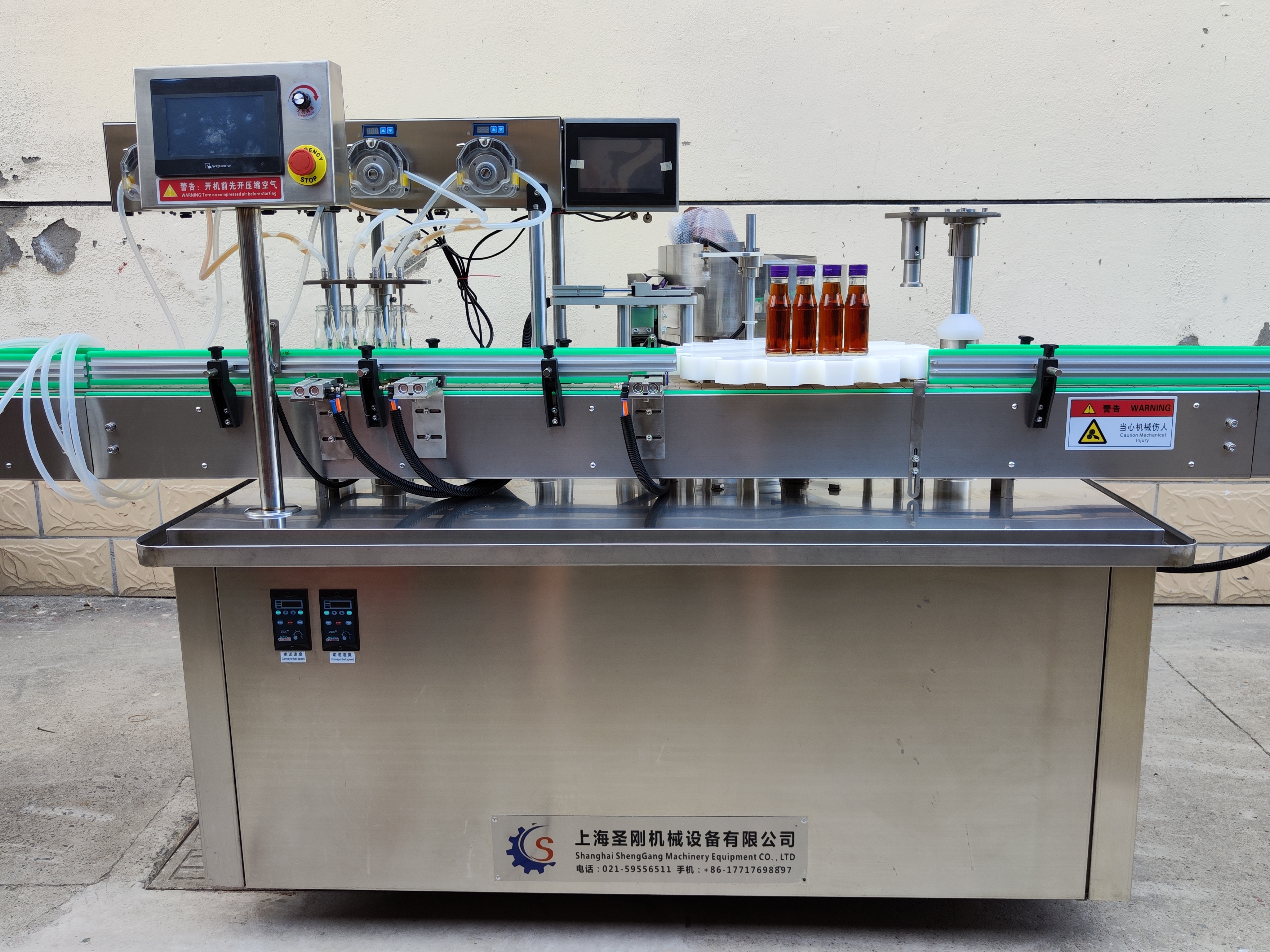 在適配靈活性上,設備也展現(xiàn)出強大實力。它支持 100-1000ml 的瓶裝規(guī)格快速切換,通過簡單調(diào)節(jié)灌裝參數(shù)與更換少量配件,即可適配從便攜小瓶到家庭裝大瓶的不同包裝需求,無需頻繁更換整條生產(chǎn)線,大幅降低企業(yè)多規(guī)格生產(chǎn)的投入成本。壓蓋模塊更是兼顧實用性,可靈活適配旋蓋、壓蓋兩種常見壓蓋方式,無論是塑料旋蓋瓶還是金屬壓蓋瓶,都能實現(xiàn)緊密封口,防止漏液與變質(zhì)。