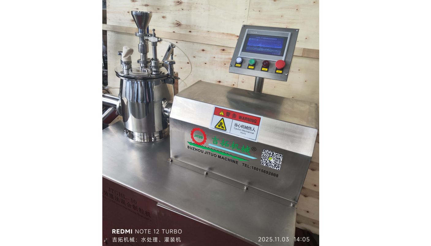 帶動絞刀的均為雙速電機,因而控制粘合劑的溶度,絞刀轉速,絞碎時間便可獲得不同粒度的顆粒,保證生產藥品在批與批之間,其粒度分布、密度、流動性等方面質量達到較高的重復水平,設備按同一程序自動生產,保證產品的制粒質量。